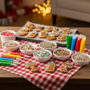 Set up a fun cookie-decorating station with gingerbread cookies in baby shapes — bottles, rattles, or onesies — and provide colorful icing and sprinkles.
