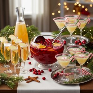 Serve festive drinks like cranberry punch, sparkling apple cider, or peppermint mocktails.