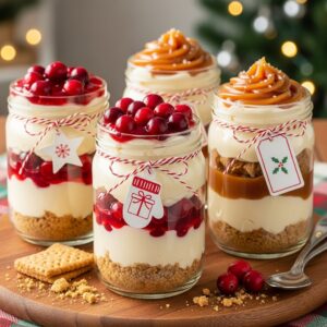Layer crushed cookies, creamy cheesecake filling, and toppings like caramel, cranberry compote, or chocolate ganache.