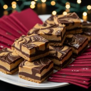 Swirl peanut butter and chocolate layers for a marbled holiday look.