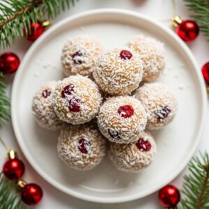 These bite-sized treats combine coconut, dried cranberries, and sweetened condensed milk, rolled into snowy white balls.