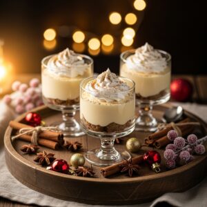 Layer homemade or instant pudding flavored with nutmeg and vanilla, then top with whipped cream and a sprinkle of cinnamon.