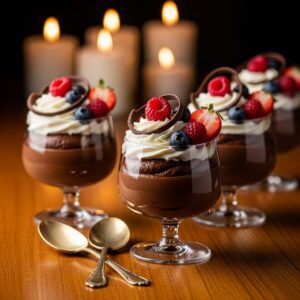 Silky, rich chocolate mousse made with whipped cream and melted chocolate — no oven required.