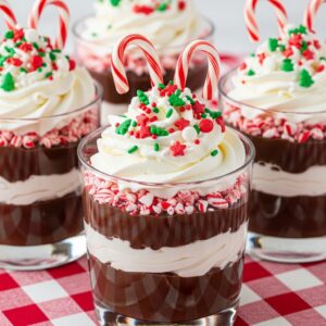 Top with whipped cream, crushed candy canes, and chocolate shavings for the ultimate Christmas dessert that looks as good as it tastes.