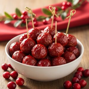 Mini meatball bites coated in cranberry glaze are both festive and flavorful.