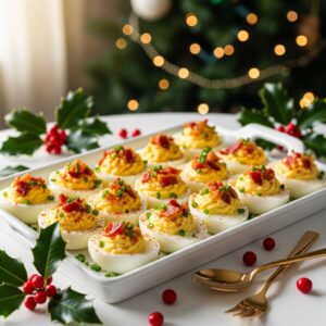 Classic deviled eggs get a Christmas makeover with toppings like crispy bacon bits, chives, or a sprinkle of paprika for color.