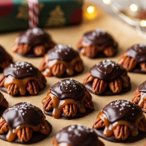 A true Christmas classic, turtle candies are made from pecans, caramel, and chocolate.