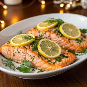 Baked until golden, it gives a light, flaky protein option that complements any festive spread.