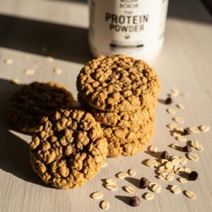 Chewy cookies made from oats and protein powder — great for meal prep or healthy snacking.
