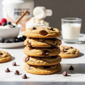 Soft chocolate chip cookies with less sugar and more protein — guilt-free indulgence.