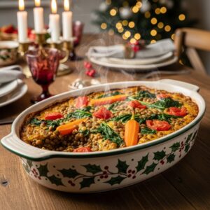 Baked with tomatoes, carrots, spinach, and spices, this warming dish offers deep flavor and satisfying texture.