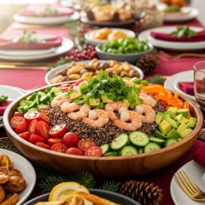 Tossed with fluffy quinoa, cherry tomatoes, cucumber, avocado, and a lemon-garlic dressing, it’s a bright contrast to heavier Christmas foods.