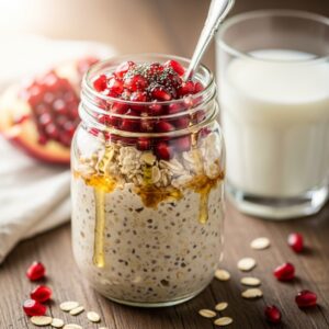 Let it rest overnight, then top with pomegranate seeds in the morning. It’s creamy, refreshing, and easy — perfect for busy mornings.
