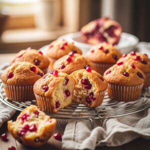 Soft, golden muffins studded with juicy pomegranate seeds.