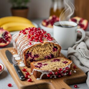 Classic banana bread gets an upgrade with pomegranate seeds folded into the batter.