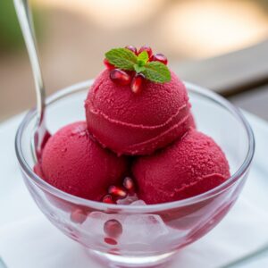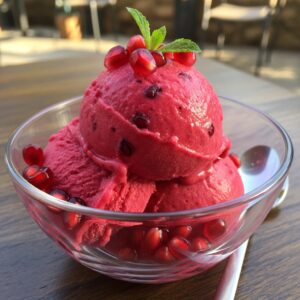 This creamy frozen dessert combines milk, cream, and pomegranate juice for a unique twist on traditional gelato. The flavor is delicate yet refreshing, and its beautiful pink color makes it irresistible. Serve it in bowls or waffle cones for a light, fruit-forward dessert.