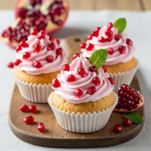 Bake vanilla or chocolate cupcakes and top them with pomegranate buttercream frosting.