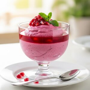 This airy dessert combines whipped cream, gelatin, and pomegranate juice to create a smooth, cloud-like mousse.
