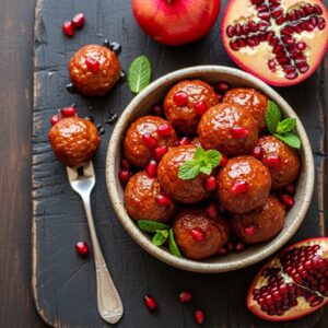 Make tender beef or turkey meatballs and simmer them in a sweet-tart pomegranate molasses glaze.