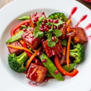 For a plant-based dinner option, pan-fry tofu cubes and toss them in a glaze made with pomegranate molasses, soy sauce, and ginger.