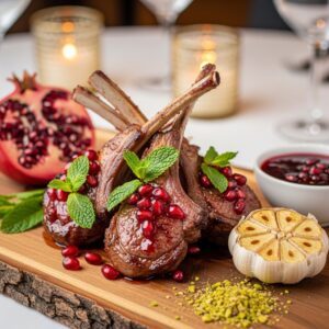 Grill or pan-sear lamb chops and brush with a pomegranate reduction made with garlic, honey, and rosemary.