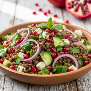For a hearty vegetarian dinner, mix cooked lentils with spinach, feta, walnuts, and pomegranate seeds.