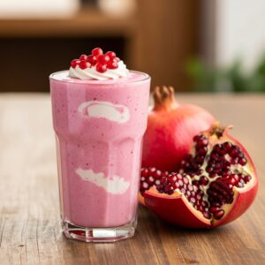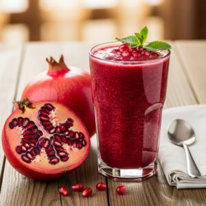 A pomegranate smoothie is the perfect blend of nutrition and taste. Combine pomegranate juice, banana, Greek yogurt, and a few frozen berries.