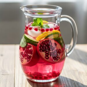 For a simple way to enjoy pomegranates daily, add pomegranate seeds, lemon slices, and fresh mint leaves to a pitcher of water.