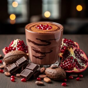 For a dessert-like treat, blend pomegranate juice, cocoa powder, banana, and milk.