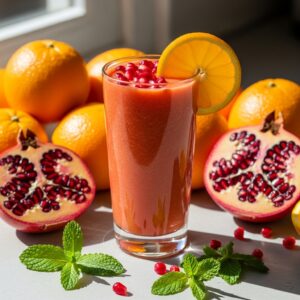 Blend pomegranate juice, orange segments, and Greek yogurt for a citrusy, tangy delight.