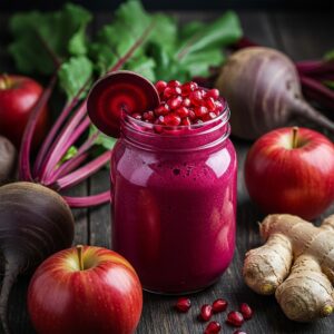 Blend pomegranate juice, roasted beet, apple, and ginger.
