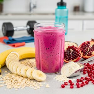 Need a post-workout boost? Blend pomegranate juice, banana, protein powder, and oats.