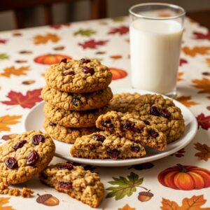 Soft, chewy oatmeal cranberry cookies bring a festive touch to your Thanksgiving dessert spread.