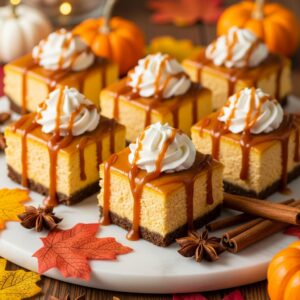 Creamy, rich, and spiced just right, these cheesecake bars combine the flavors of pumpkin pie and cheesecake.