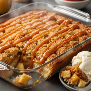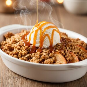The combination of baked apples and crunchy oat topping is irresistible, especially when paired with whipped cream or ice cream.