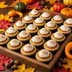Cute, bite-sized, and crowd-friendly! These mini pumpkin pies are baked in muffin tins and topped with whipped cream.