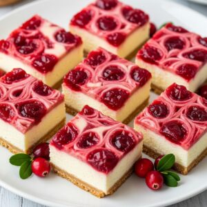 These sweet-tart bars combine creamy cheesecake with a cranberry swirl.