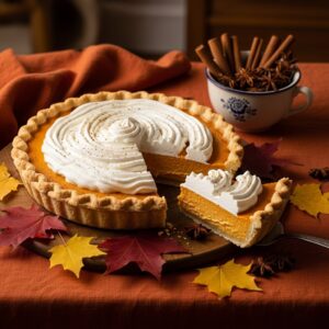 The ultimate Thanksgiving dessert! Pumpkin pie’s creamy, spiced filling and buttery crust make it a timeless favorite.
