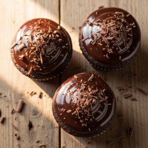 Rich chocolate cupcakes with a deep, fudgy flavor perfect for chocolate lovers.
