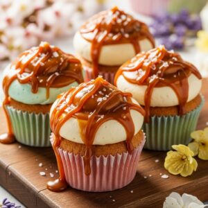 Sweet cupcakes with a touch of salt, topped with caramel drizzle.