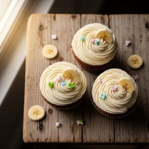 Moist cupcakes made with ripe bananas, perfect with cream cheese frosting.