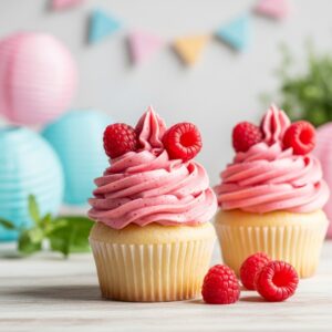 Vanilla cupcakes with a swirl of raspberry puree for a fruity, tangy touch.