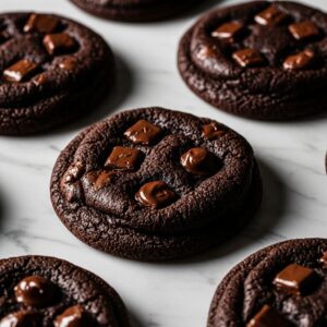 Rich, decadent cookies made with cocoa powder and chocolate chunks.
