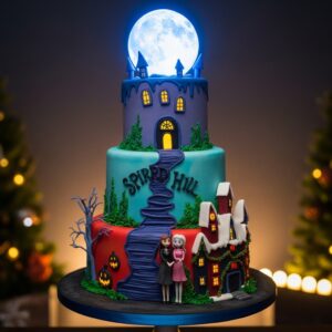From romantic moonlit designs to dramatic gothic towers, these 14 cake ideas capture both the haunting beauty and heartfelt romance of Halloween Town.