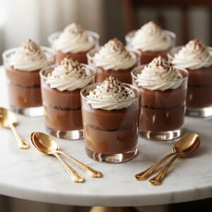 Serve them in small glass cups with whipped cream and a sprinkle of cocoa powder or crushed hazelnuts for a sophisticated presentation.