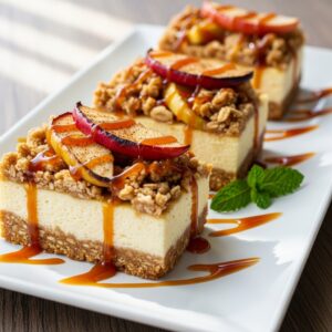 These bars combine creamy cheesecake, cinnamon apples, and a crunchy oat crumble.