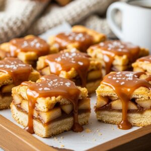 Chewy caramel apple bars with a buttery shortbread crust and gooey apple filling are a crowd-pleaser.