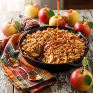 Caramel apple crisp combines soft baked apples with a golden, crunchy oat topping.