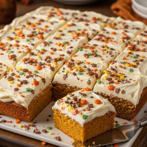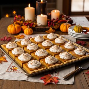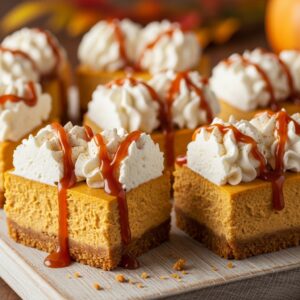 These bars combine two favorites—cheesecake and pumpkin pie—in one creamy, shareable dessert.