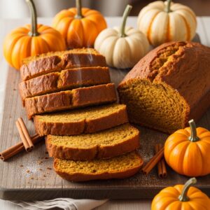 Bake a few loaves of moist pumpkin bread, slice them thick, and arrange them on a dessert platter.